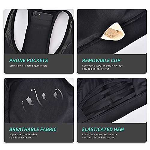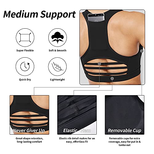 Genric Women Padded Sports Bra with Phone Pockets – for Yoga Gym,Fitness,Workout,Running(Black,Medium)