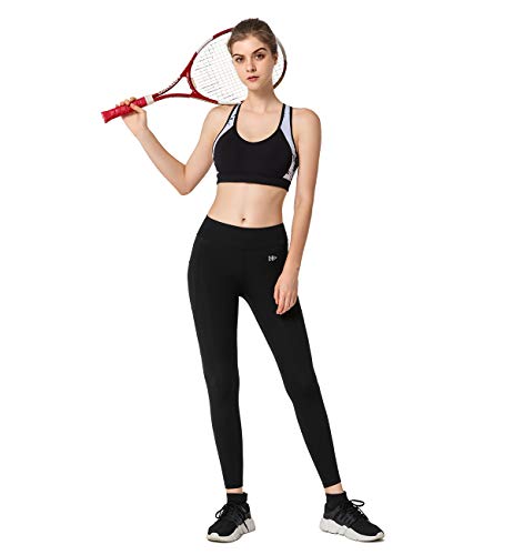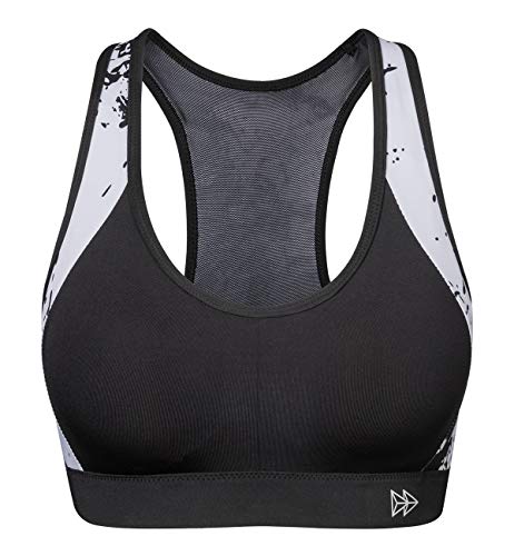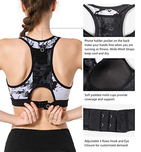 Yvette Womens Racerback High Impact Sports Bra with Back Pocket Running Workout Sports Bras, 09A, M+ Black