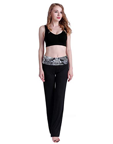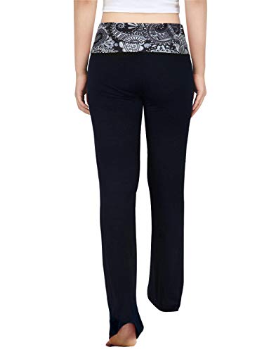 HDE Foldover Athletic Yoga Pants Gym Workout Leggings (Black Paisley, Medium)